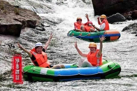 【刺激】漂流河道长8公里,漂流总落差198米,5米/秒磅礴水量,刺激非凡,是广大水上户外运动爱好者的天堂