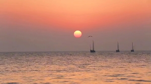 【景色】帆影浮天际,波光碧水濛;霞飞彤色染,浪涌夕阳红;——《太湖夕照