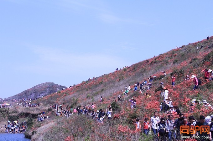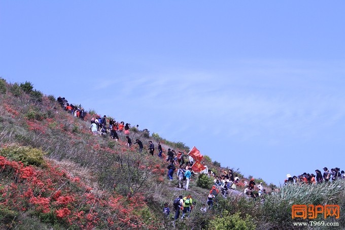 发布于 2018-01-20 14:53 楼主 发表于 2013-4-14 15:37:39 漫山遍野的杜鹃花,络绎不绝的赏花人狭窄的山路上,人流如潮游人如织,领队崩溃上山的,下山的,抄近路爬山的,下山的。。男女老少,驴友游客,白发老人,吃奶婴儿,宠物狗狗。。。。登山鞋、旅游鞋、高跟鞋、摩登靴、皮鞋。。。还有宾馆的一次性拖鞋。。。。长裤、短裤、长裙、短裙、丝袜。。。五花八门行进在人山人海的赏花路上赏花路上人也堵车是什么有如此大的诱惑上山途中我还在犯嘀咕上升了200米高还没有看到杜鹃花是不是山顶上有,对,应该是山顶成片的杜鹃花向目标前进,路上堵得焦心原有的登山组穿越计划全被打乱两队汇合一队前行感谢上天赐予上堡山这神奇的地方漫山遍野的杜鹃花,跳动着火红的色彩感谢几位美女麻豆让我过了把瘾上图,请看上堡大片。。。。欢迎留下足迹,鲜花、掌声、拍砖。。杜鹃花