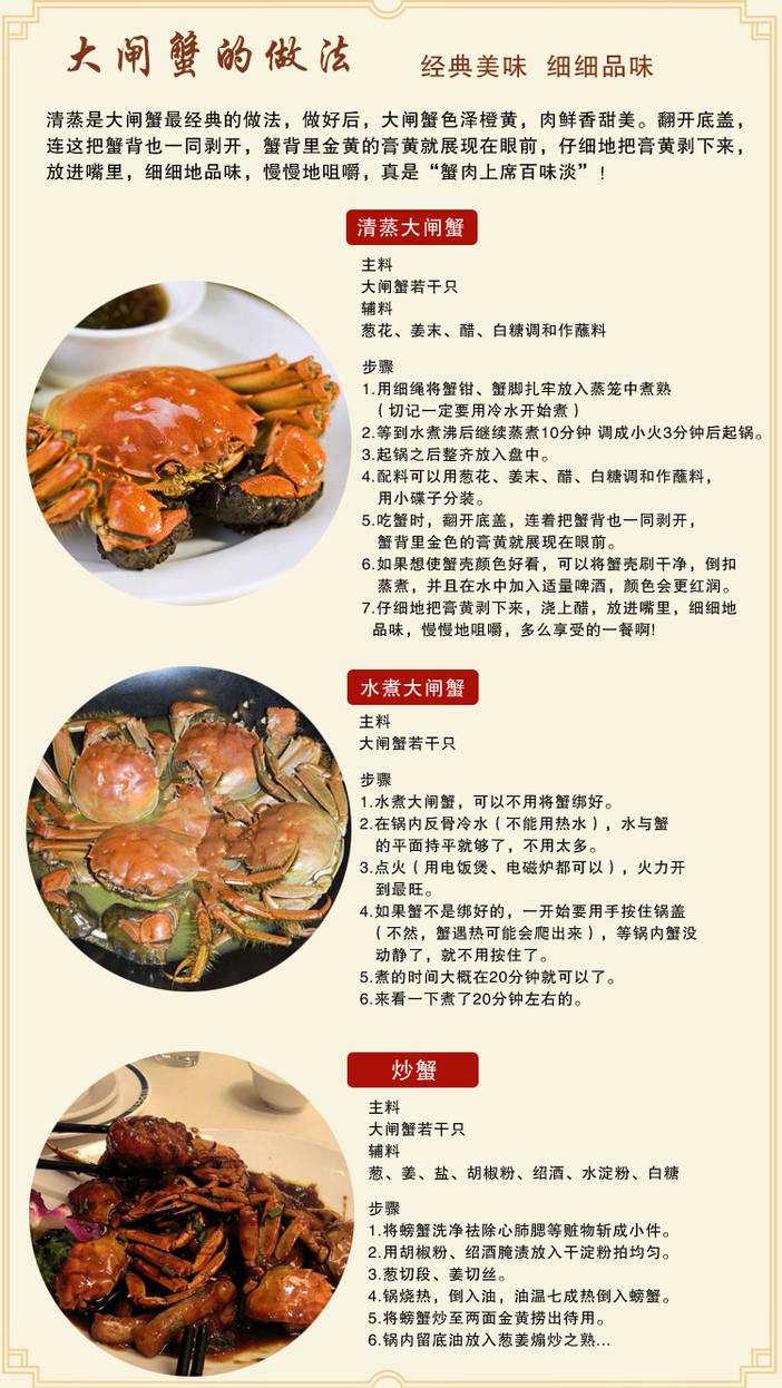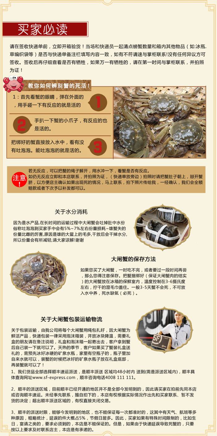 | 兴化红膏大闸蟹 江苏省兴化红膏大闸蟹,中国地理标志产品。被授予“中国河蟹之乡”称号,兴化市被授予“中国河蟹养殖第一县”称号。兴化市内湖荡密布,河道纵横交织,湖荡内水草丰美, 所产大闸蟹具有“青壳、白肚、金爪、黄毛、博螯、捷足”的特点,脂膏丰满纯正、肉质玉白爽嫩、蟹黄晶红油润、入口鲜香溢甜,深受海内外消费者的青睐。 所产的大闸蟹入选“中国十大名蟹”、荣获“中国名蟹金奖” 现市面上98%以上的阳澄湖大闸蟹均产自兴化 此蟹是同驴会员驴友——网名 如果 自养的蟹 100%真实、可靠、 非那种洗澡过水蟹、冒牌蟹。 套餐一:4只 散装 2.5两母2只+3.5两公2只 同驴户外店取货 78元 套餐二:4只 散装 3两母2只+4两公2只 同驴户外店取货 118元 套餐三:10只高档礼盒装 2.5两母5只+3.5两公5只 顺丰快递到家 230元 套餐四:10只高档礼盒装 3两母5只+4两公5只 顺丰快递到家 320元 以上分量略有0.1两左右浮动! 要更大的请联系青岛18072787277(微信同号) ![]() ![]()